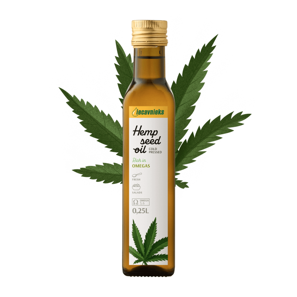 Iecavnieks processes oilseeds – rape, flax and hemp. Processing produces unrefined oils, which are obtained by cold pressing, mechanically compressing the seeds and performing a high-quality filtration process.