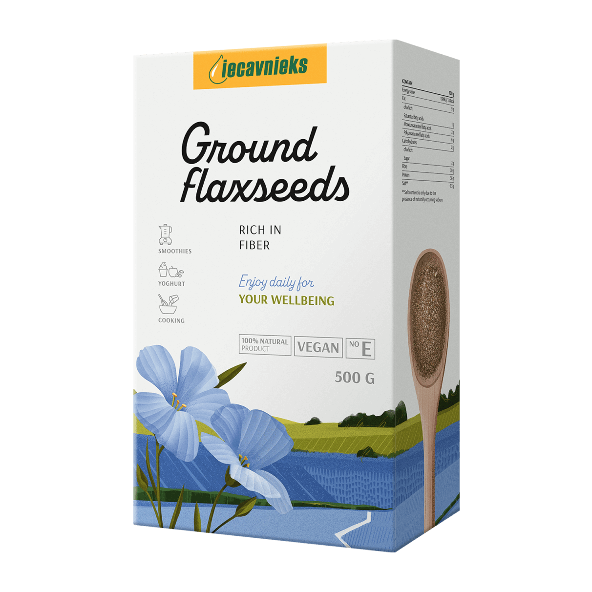It is obtained by grinding high-quality seeds and partially removing the oil. This product is not only a valuable source of fibre and protein, but also a tasty addition to the diet. Add a couple of tablespoons to breakfast yoghurt, fruit smoothie, buttermilk or juice. Ground flaxseed is used to replace all or part of the flour when baking bread, biscuits and cakes.